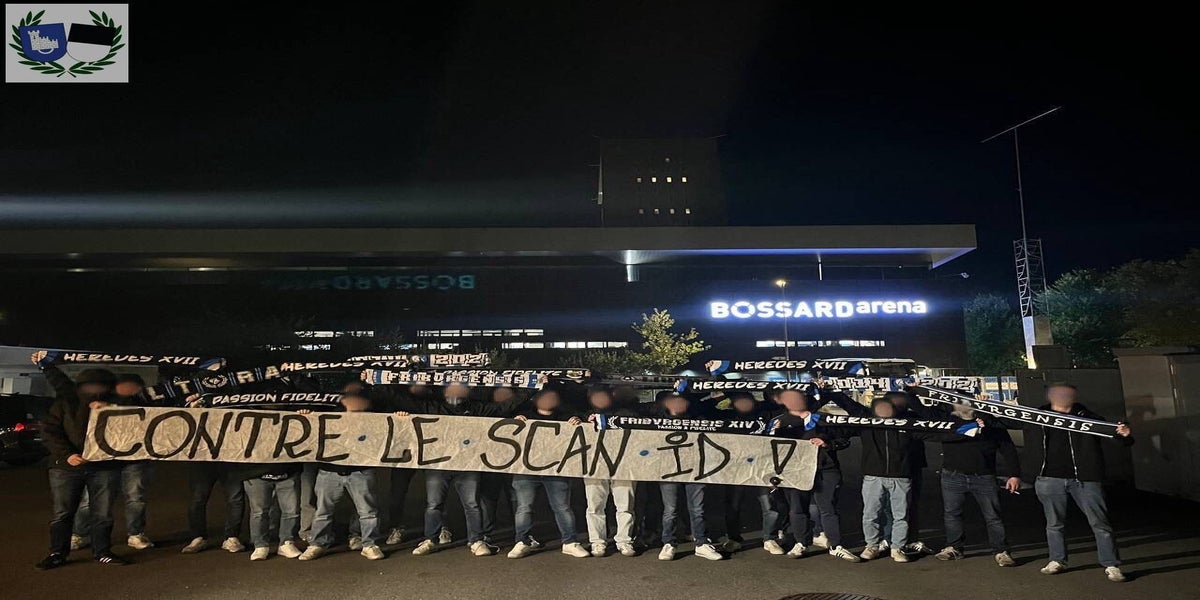 18.10.2024 - Protestation du groupe Fribvrgensis XIV contre le scan ID à la Bossard Arena